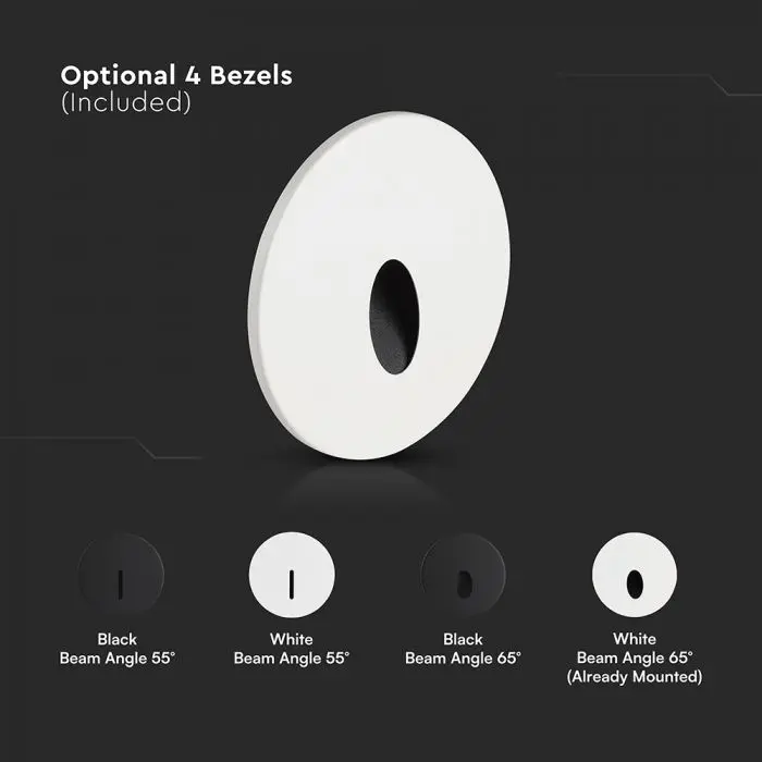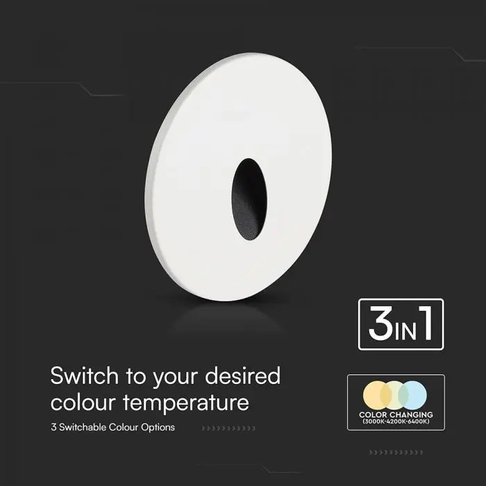 Faretto segnapasso LED 3W IP65 con corpo in alluminio e PC nero, luce CCT 3in1 regolabile 3000K, 4200K o 6400K. Inclusi 4 frontali magnetici bianchi e neri con fasci 55° e 65°. Ideale per scale, corridoi e zone di passaggio interne o esterne.
