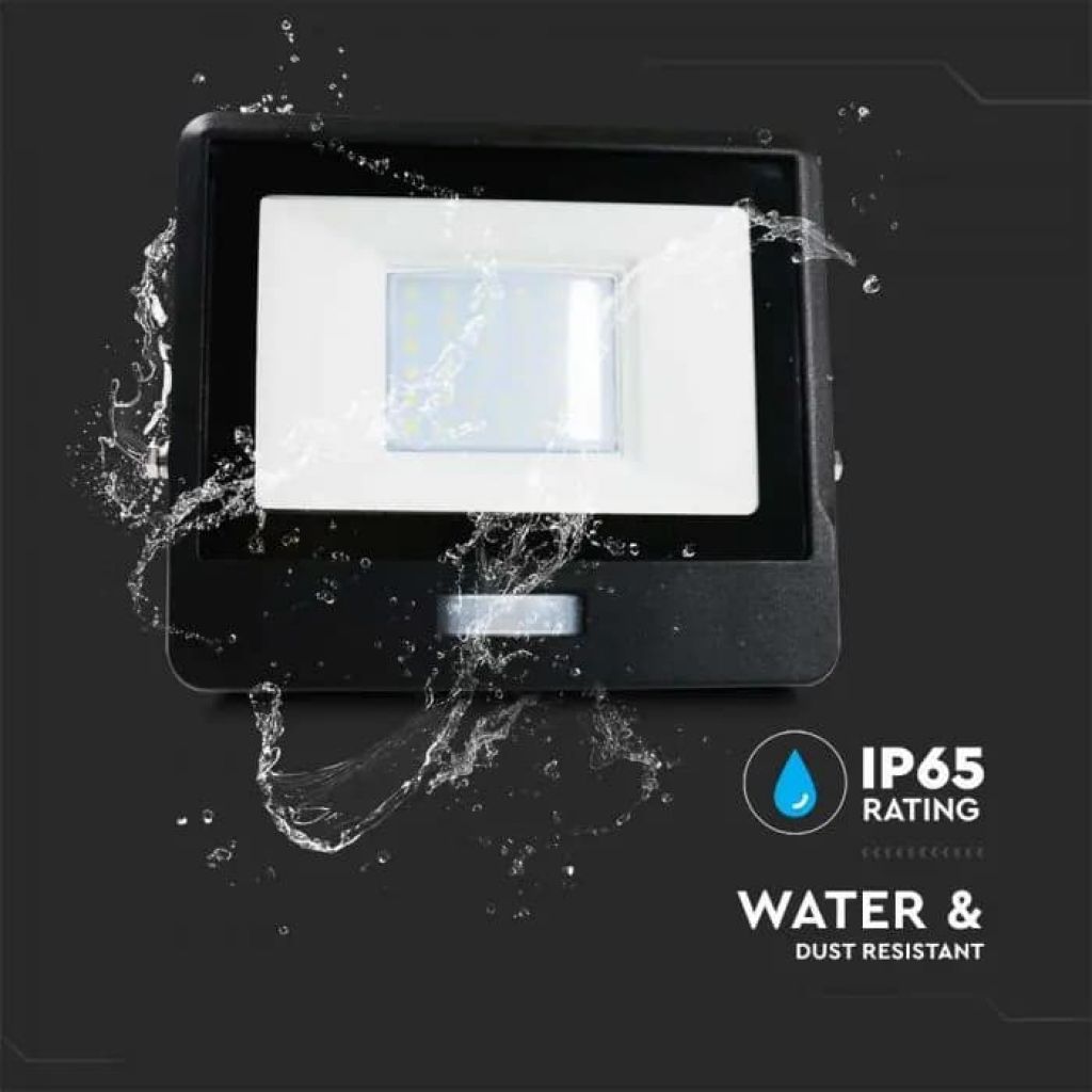 Di seguito maggiori informazioni sul prodotto V-TAC con SKU 20288, categoria Fari - Con sensore: VT-138S-1 Faretto LED con potenza di 30W Il prodotto è realizzato in alluminio pressofuso di colore nero Con tecnologia LED SMD, ha un fascio luminoso di 100° e un flusso luminoso di 1510 lm Ha un rapporto di 75 *lm/W Il prodotto è dotato del grado di protezione IP65 che lo rende ideale per l'uso esterno anche sotto la pioggia prolungata
