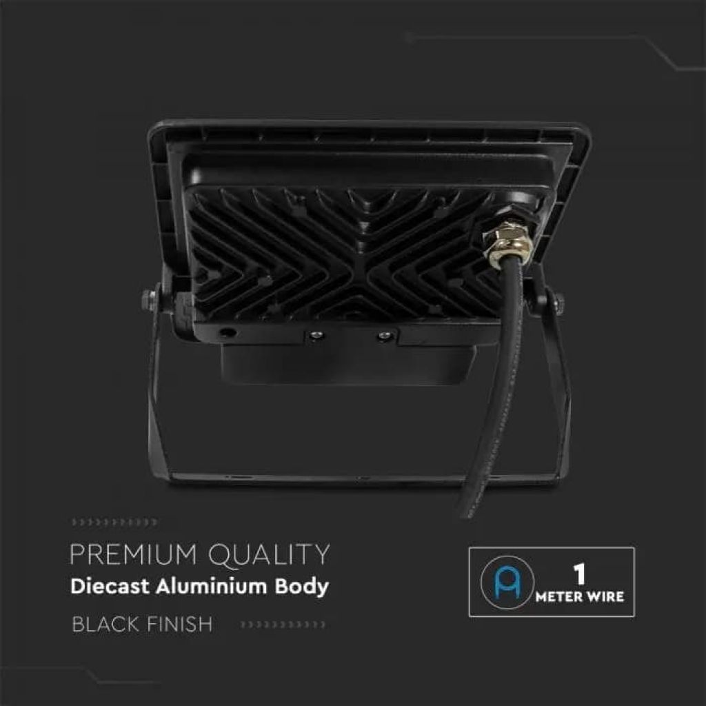 V-TAC PRO Faro LED Chip Samsung 30W con Sensore PIR Cavo 1m Colore Nero 6500K IP65