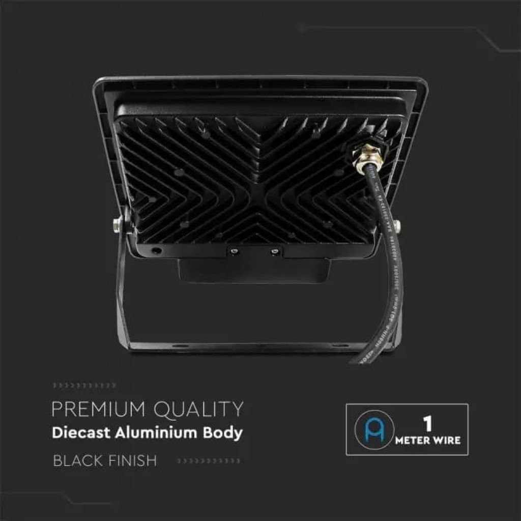 V-TAC PRO Faro LED Chip Samsung 50W con Sensore PIR Cavo 1m Colore Nero 6500K IP65