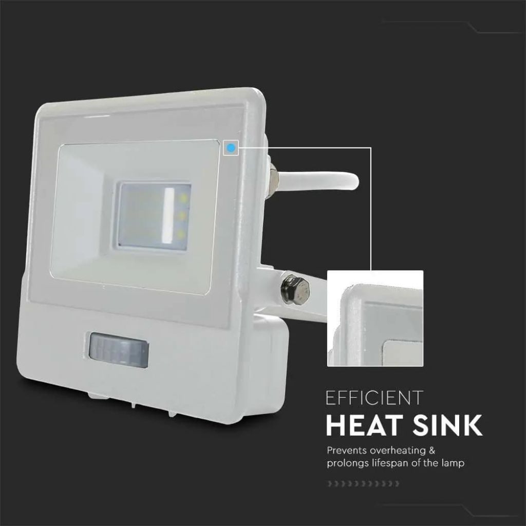 V-TAC PRO Faro LED Chip Samsung 10W con Sensore PIR Cavo 1m Colore Bianco 4000K IP65