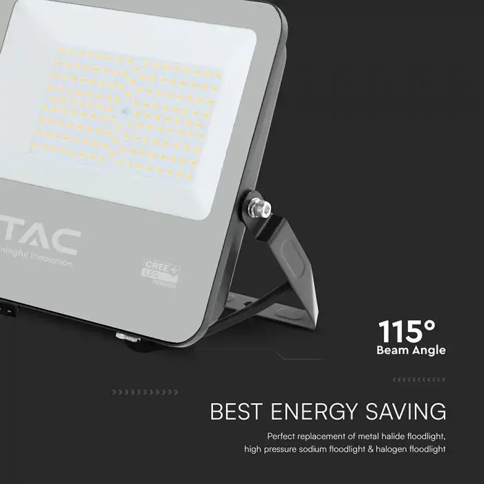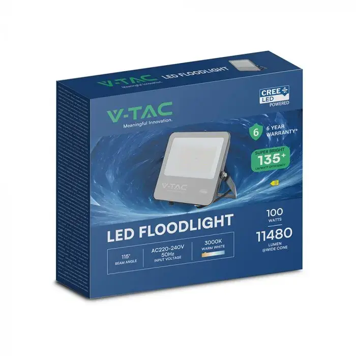 V-TAC PRO Faro Slim LED SMD Chip CREE 100W 135LM/W Cavo 1m Nero 4000K IP65