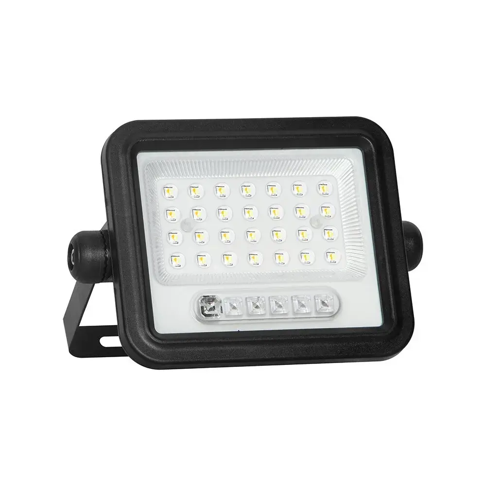 Faro LED solare con regolazione della luminosità e timer tramite telecomando. Autonomia fino a 12 ore con ricarica solare in 4-6 ore. Sensore crepuscolare per accensione automatica, indicatore stato batteria e luce CCT regolabile da 2000K a 6000K.