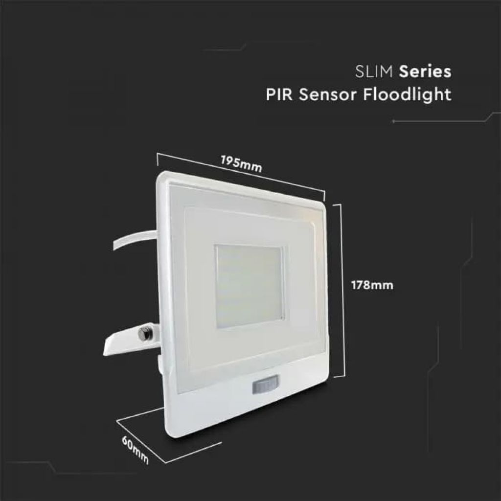 V-TAC PRO Faro LED Chip Samsung 50W con Sensore PIR Cavo 1m Colore Bianco 4000K IP65