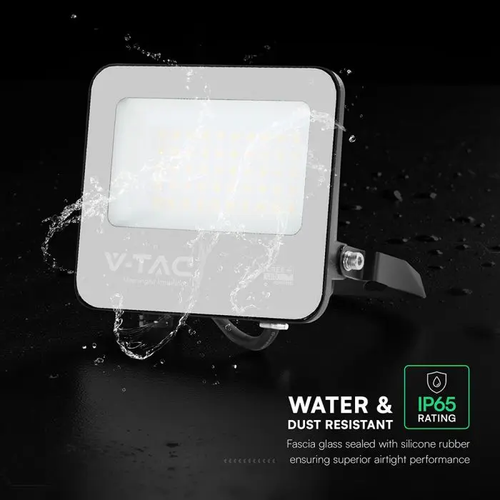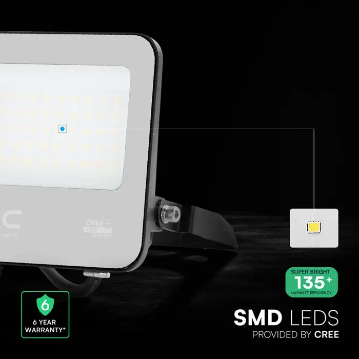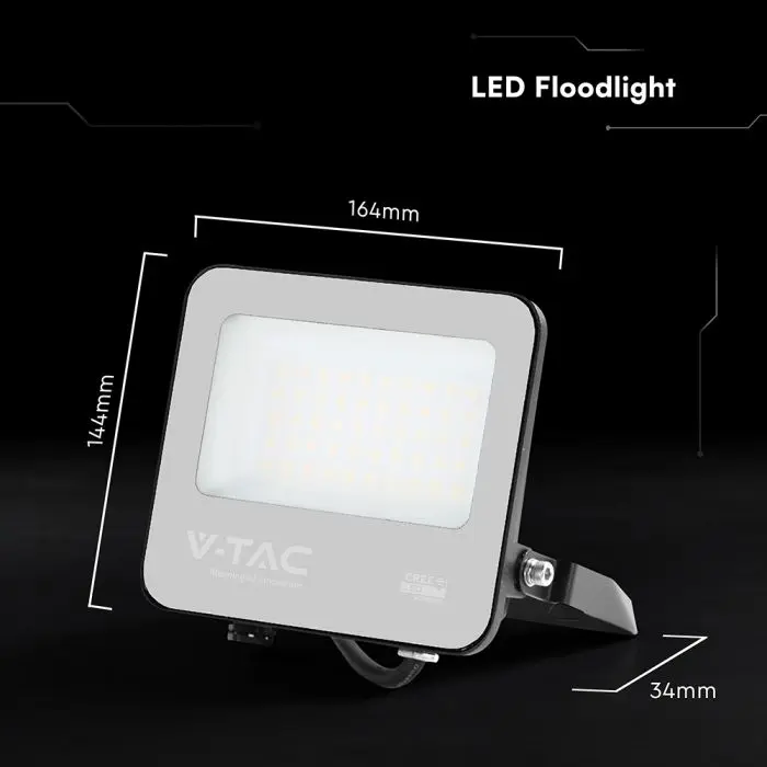 V-TAC Faro LED SMD Chip CREE 30W 135LM/W Nero con Vetro Grigio 4000K IP65