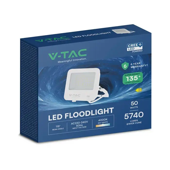 V-TAC Faro Slim LED SMD Chip CREE 50W 135LM/W Cavo 15cm Bianco 6500K IP65