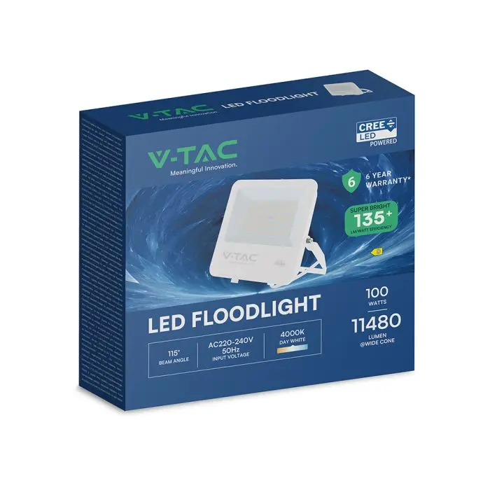 V-TAC Faro Slim LED SMD Chip CREE 100W 135LM/W Cavo 1m Bianco 4000K IP65