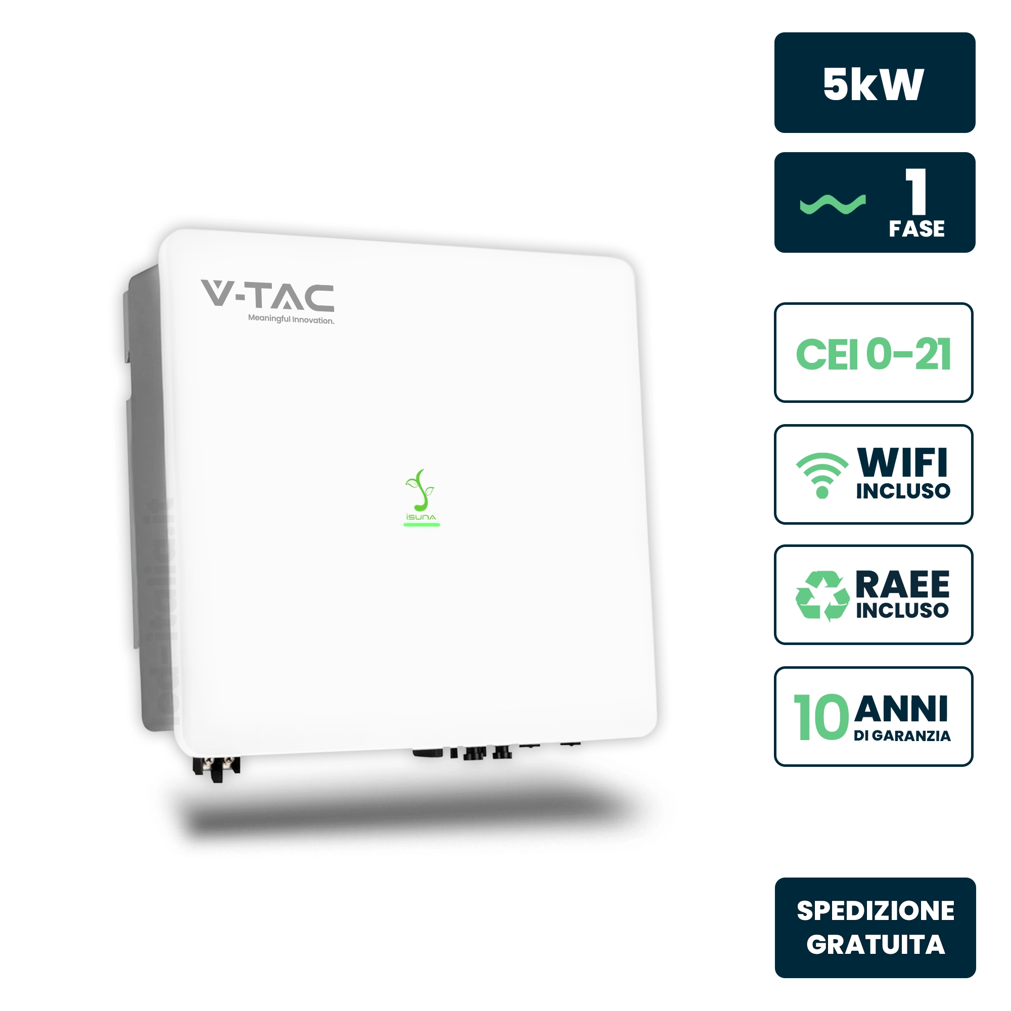 L'Inverter Ibrido Sinexcel Isuna di V-TAC SKU 12158, Monofase 5kW Doppio MPPT, è un dispositivo elettronico che permette di convertire la corrente continua