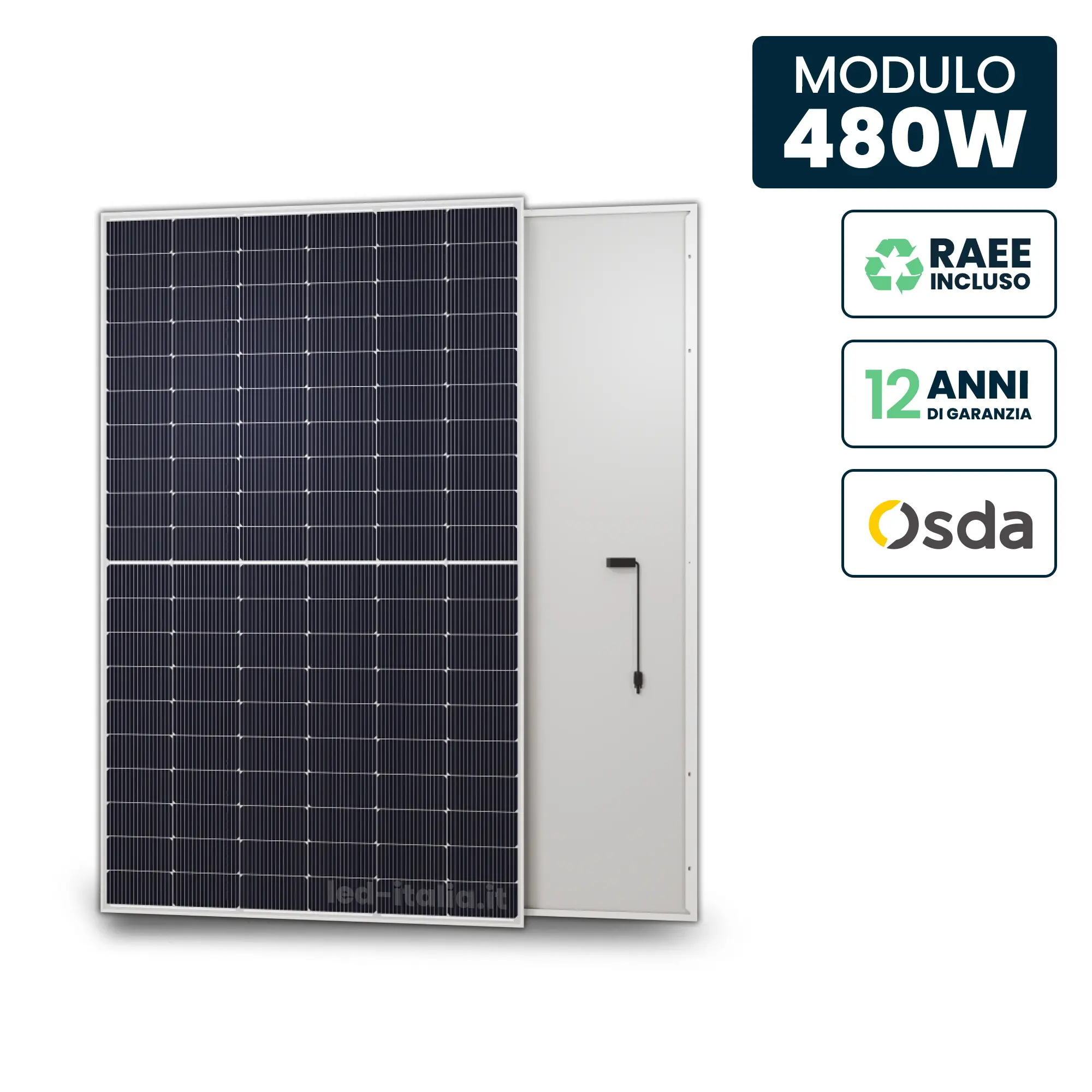 V-TAC SKU 122855 è un Set da 5.76kW con 12 Moduli Fotovoltaici Monocristallini Tier-1 da 480W Silver Frame, appartenente alla serie N-Type TOPCon di OSDA Solar (AUSTA) (ODA480-30V-MH), progettato per offrire prestazioni eccellenti in qualsiasi condizione ambientale. Le dimensioni di 1903x1134x30mm e una densità di potenza di 222W/m² lo rendono ideale per installazioni di impianti fotovoltaici residenziali, commerciali e industriali, ottimizzando lo spazio disponibile.