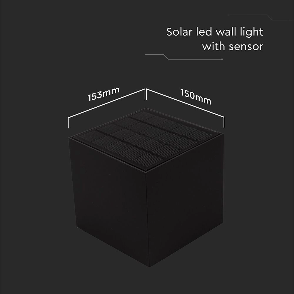 V-TAC Lampada LED da Giardino con Pannello Solare 9W Batteria 2600mAh e Sensore PIR Colore Nero 150x153x150mm CCT 3in1 IP65