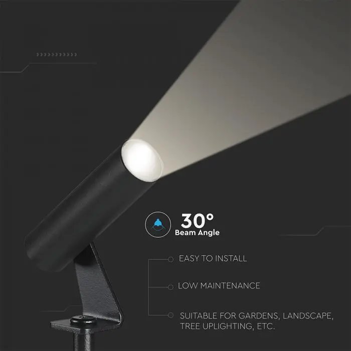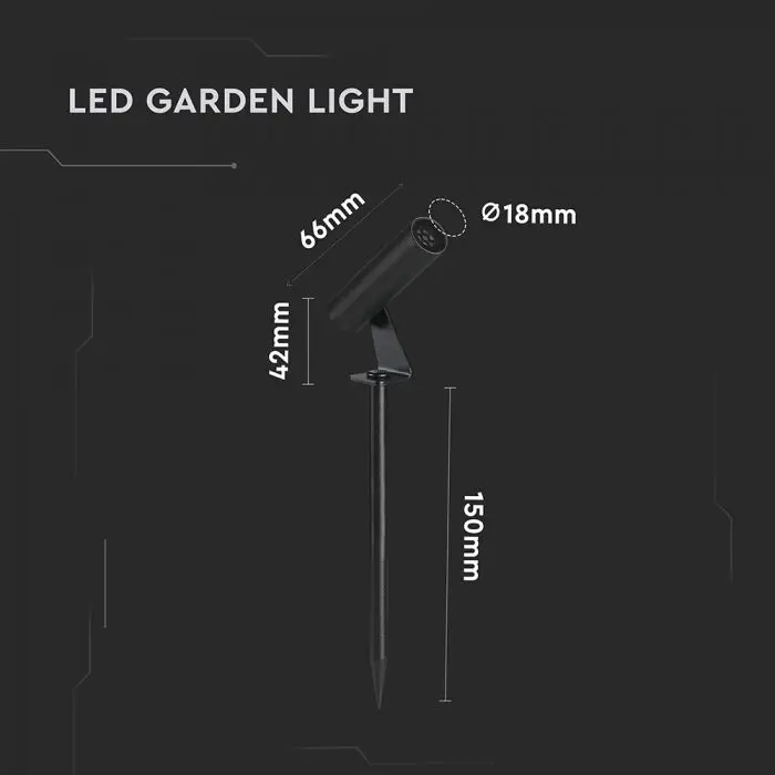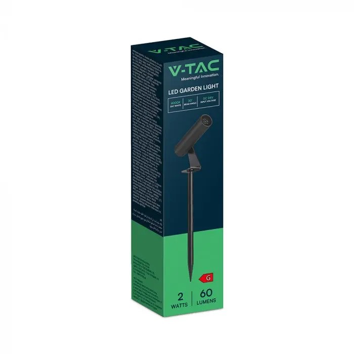 V-TAC Faretto LED da Terra 2W Cilindrico Orientabile con Picchetto Nero 4000K IP65