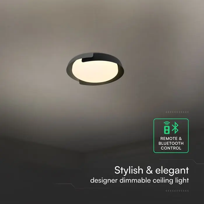 V-TAC Lampadario LED 48W Decorativo Rotondo con Telecomando Grigio e Legno 3in1 Dimmerabile