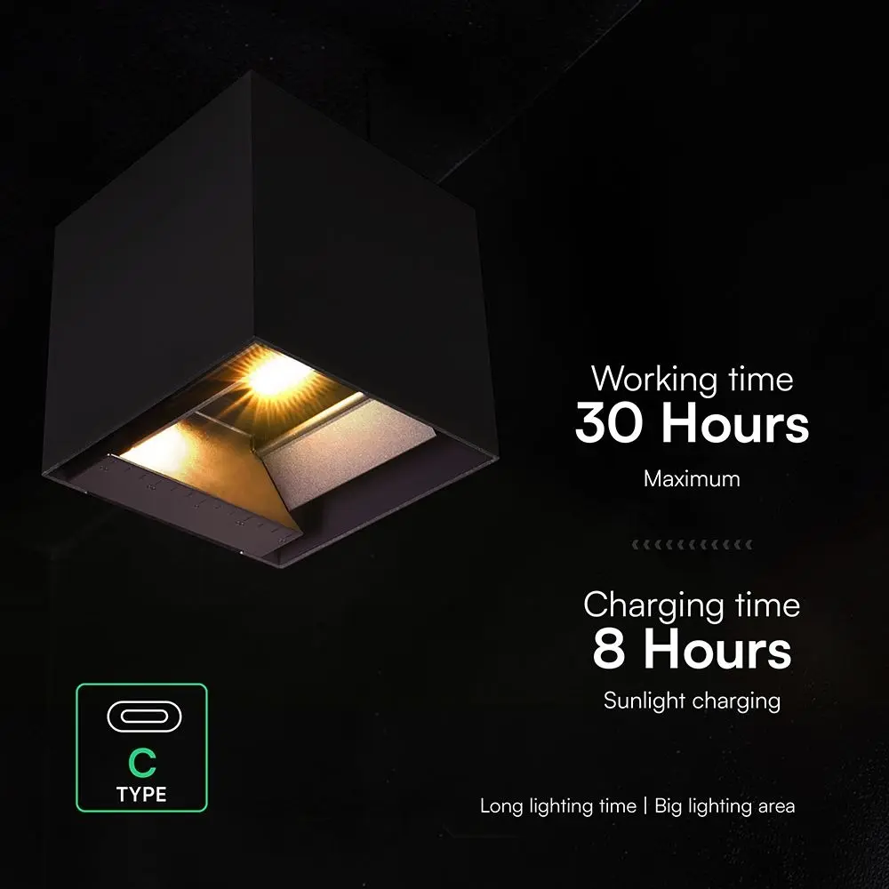 V-TAC Lampada Solare LED da Giardino 9W USB 2600mAh Sensore PIR Nera CCT IP65