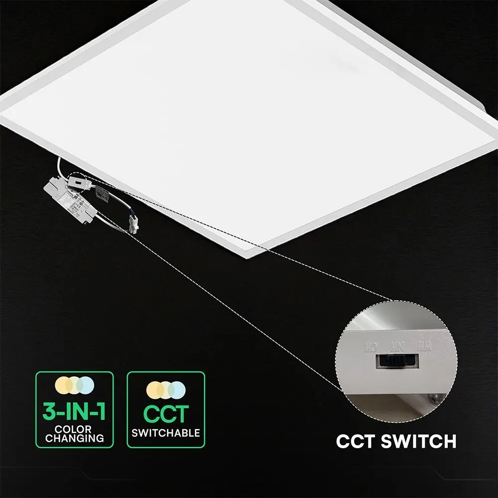 Pannello LED backlit 60x60 40W con tecnologia 3CCT selezionabile (3000K/4000K/6500K) tramite DIP switch. Flusso luminoso 4800 lm ed efficienza 120 lm/W, CRI >80 e fascio 110°. Driver Starsense incluso con PF >0,9. Ideale per uffici, sale riunioni e ambienti professionali. Installazione a incasso su controsoffitto 600x600, IP20, durata 30.000 ore.