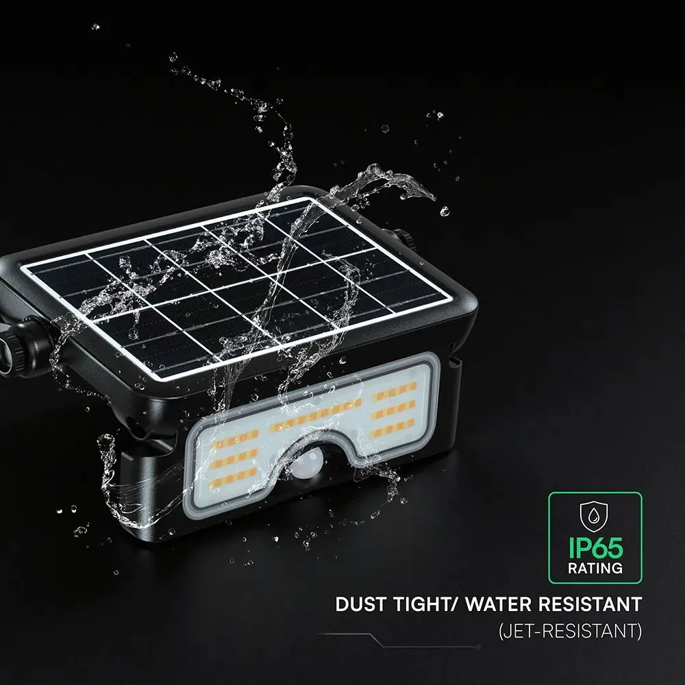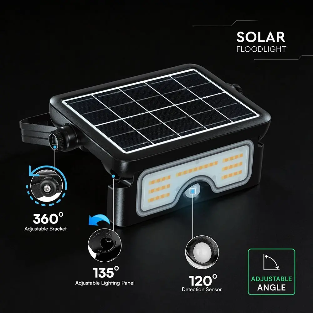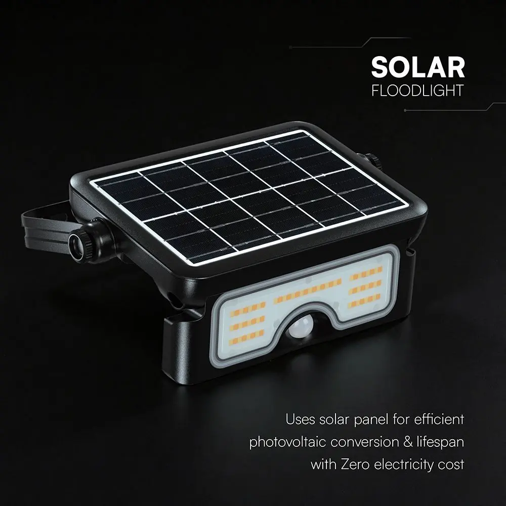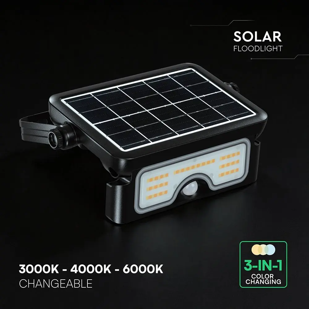 V-TAC 7W LED SOLAR FLOODLIGHT LITHIUM BATTERY 30000mAh 3.7V CCT: 3IN1 BLACK BODY