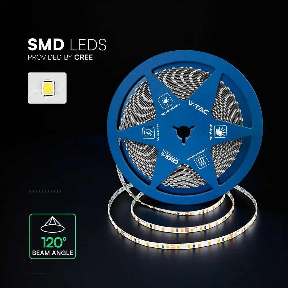 V-TAC PRO Strip LED Chip CREE 8W/m 10m 120 LED/m Doppio PCB 24V 4000K CRI>90 5mm